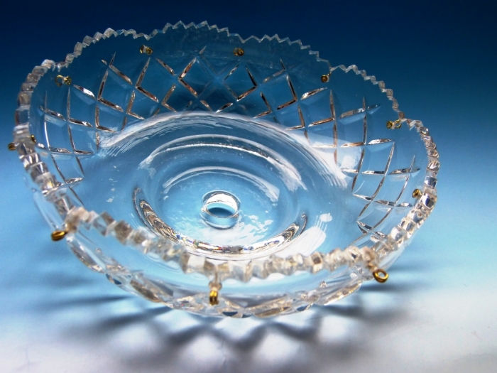 Диам. центр. отверстия 11 мм;  глубина 50 мм, 10 лепестков; 10 петель для подвесок; цвет петель золото или серебро